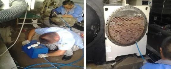 ①高壓水清洗:高壓水沖洗是利用高速水流的強力射流,以一定的角度作用于被清洗表面進行清洗的方法。通常用于熱交換器的管束內(nèi)外清洗和冷卻塔填料的清洗。